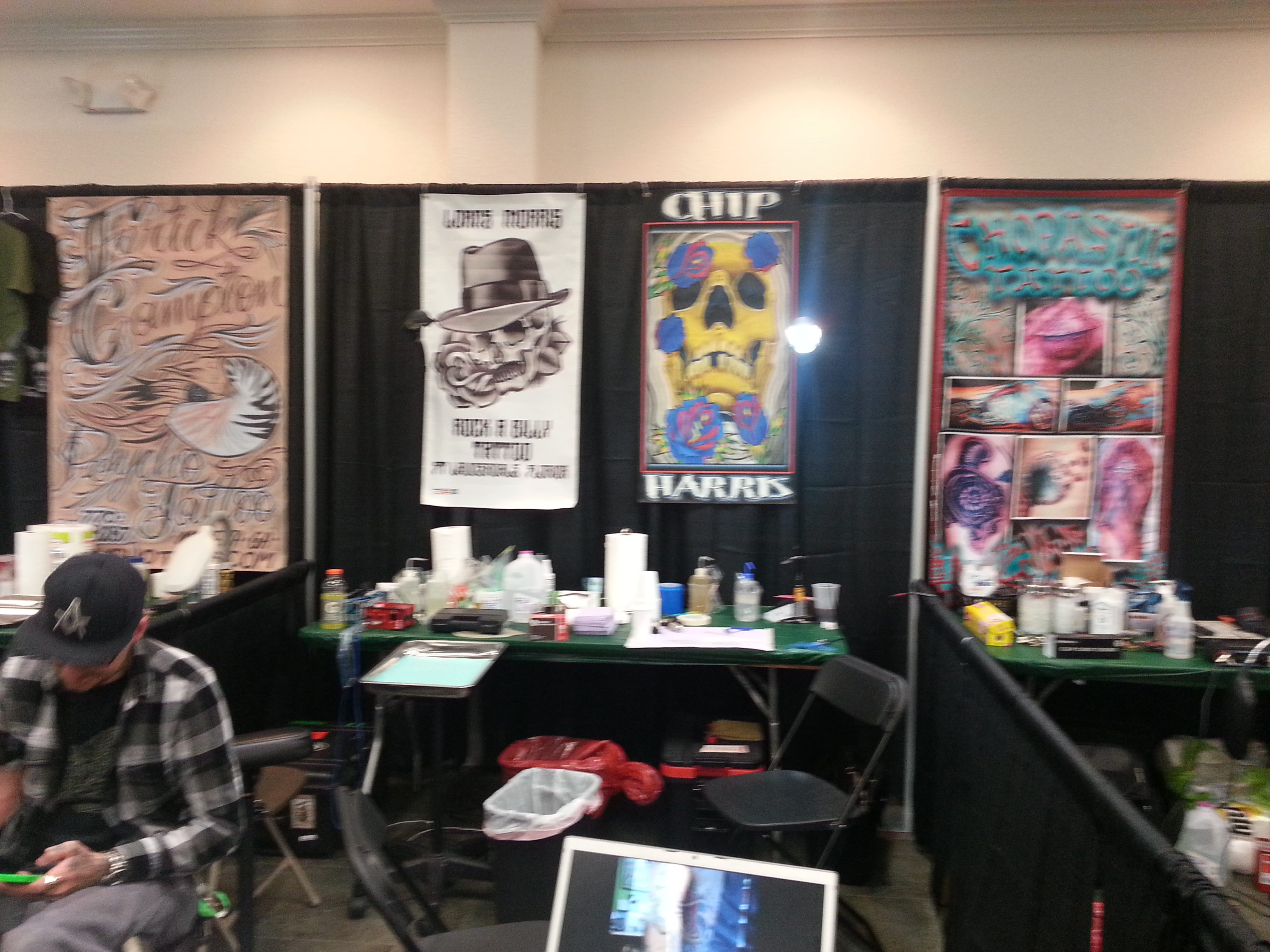 Marking the flames before tattooing.
